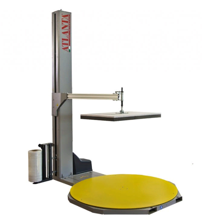 Во время процесса упаковки, груз надежно фиксируется прижимным устройством на поворотной платформе и обеспечивает устойчивое положение паллета. Тем самым предотвращает падение либо смещение.
